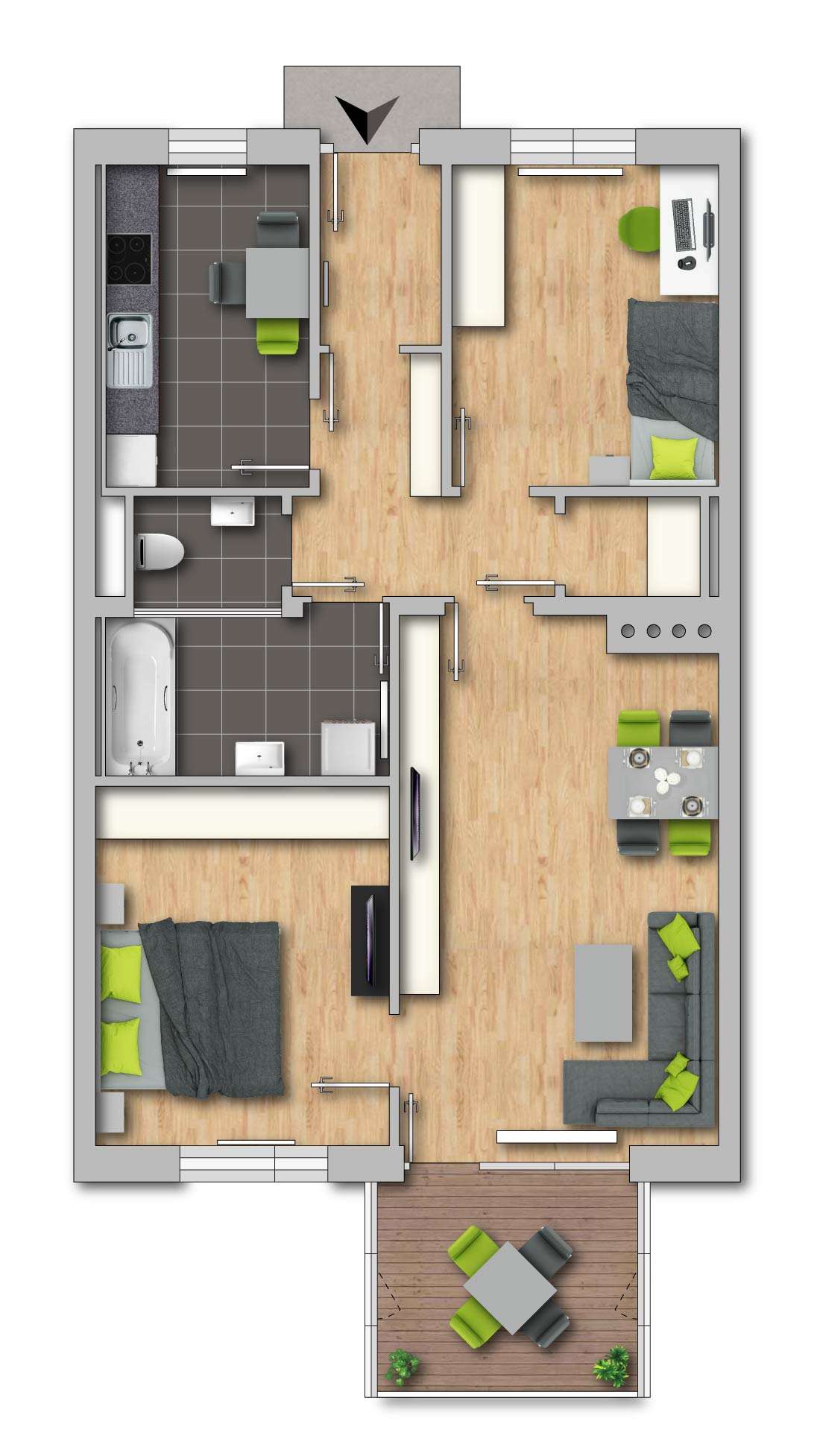 Barrierefreie und vollmöblierte 3-Zimmer-Wohnung in Grünlage